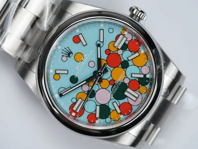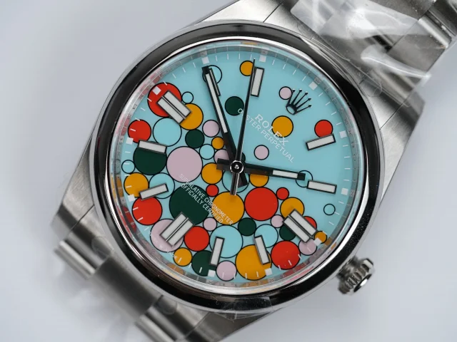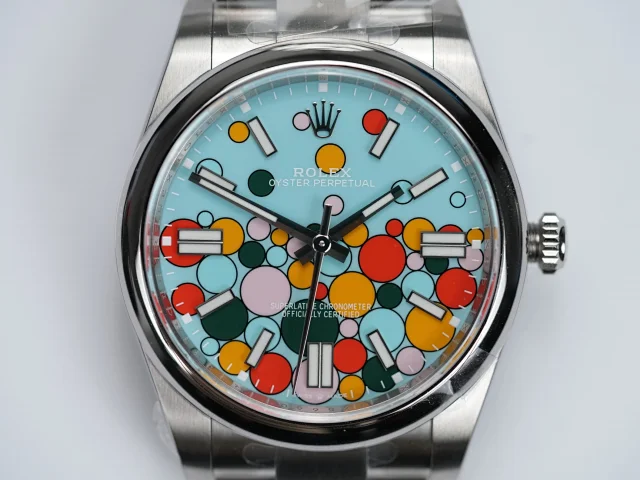 This model is perfect for anyone looking for a colorful, high-quality 41mm Oyster Perpetual replica.